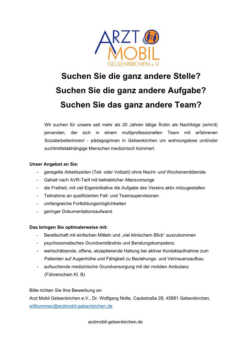 ArztMobil GE e.V. sucht Arzt/Ärztin