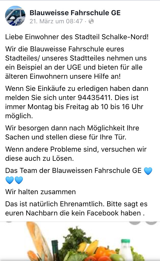 Blauweisse Fahrschule GE macht Einkäufe für Sie