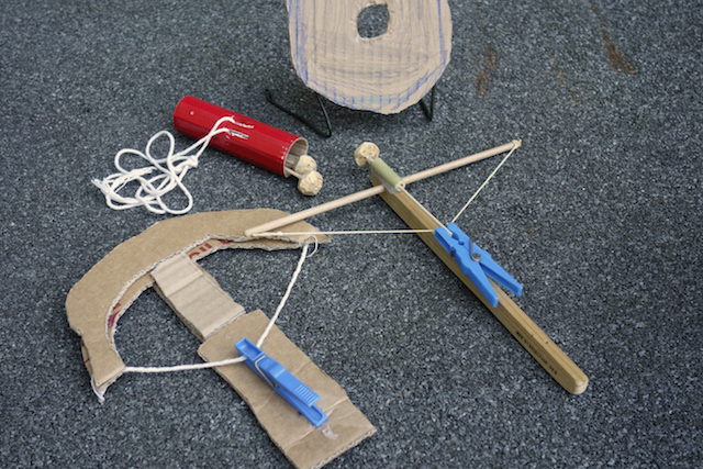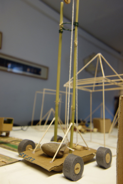 Unter Anleitung des Künstlers Karl Rosenwald wird gefeilt, gesägt, gebogen und gebohrt und nach und nach gebaut, was gefällt: Ein Motor mit Gummiband, eine Gitarre, ein Flugzeug, ein Eisenbahntunnel, ein Windauto oder auch etwas ganz anderes.
