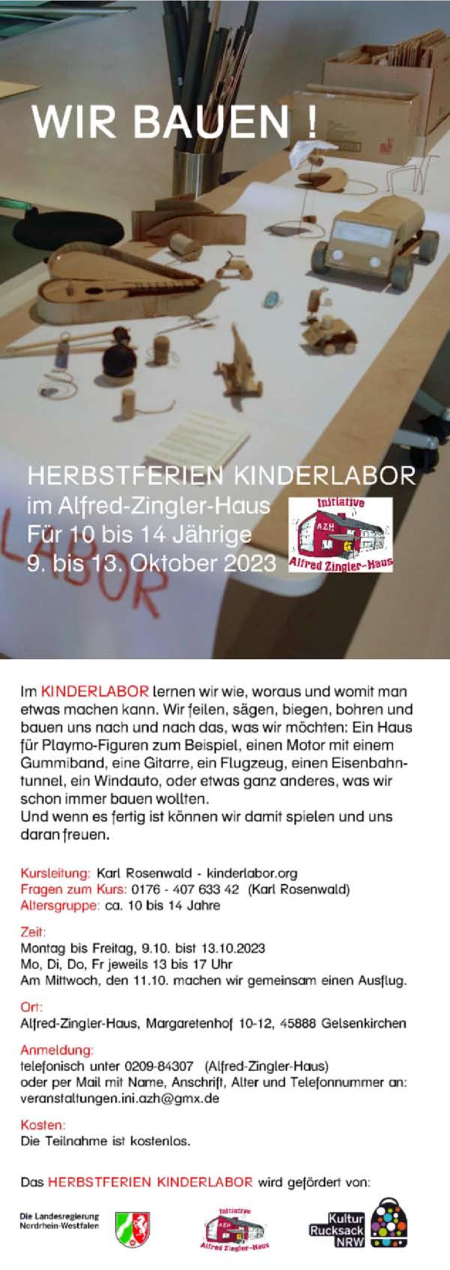 Kinder von 10-14 Jahren sind herzlich eingeladen, die Herbstferien kreativ im Alfred-Zingler-Haus zu verbringen. Wichtig ist die Erkenntnis: Alles geht, nichts muss!