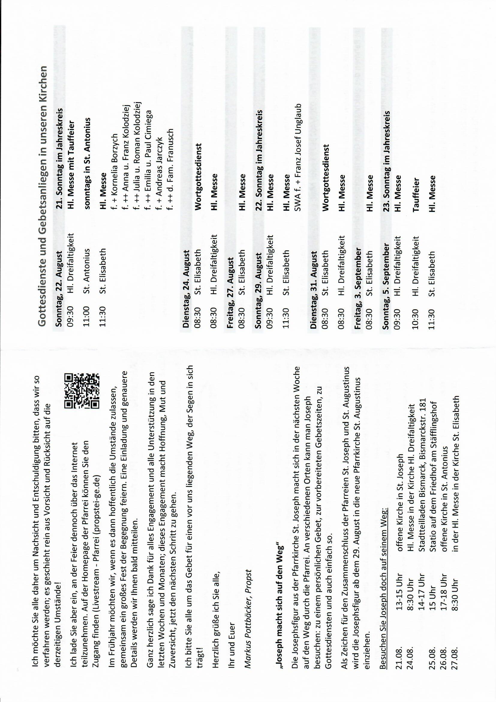 Katholische Pfarrei St. Joseph - Aktuelles 220821