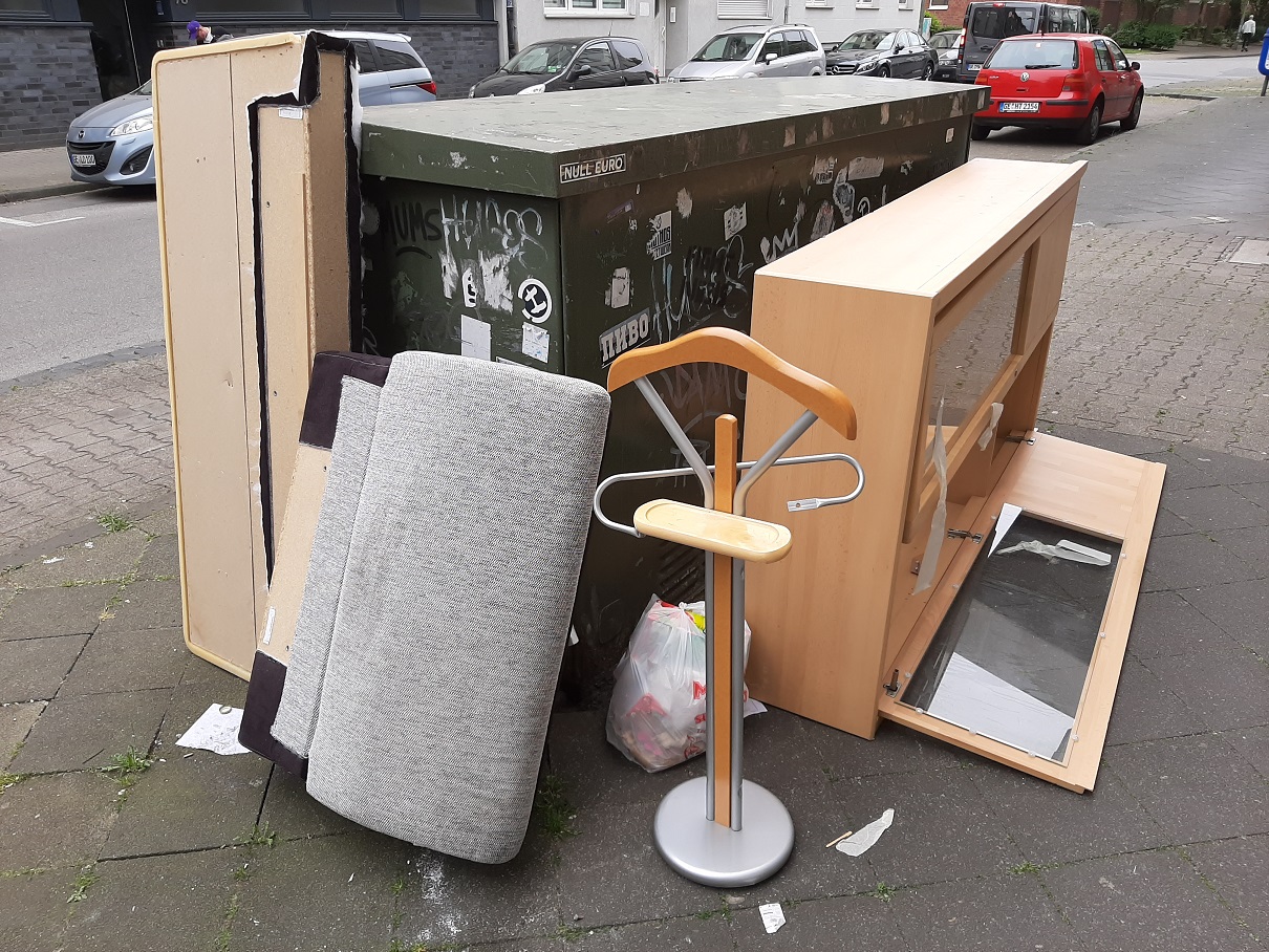 Diese 3 Bilder wurden an einem Tag in einer Strasse gemacht. Dieses wilde Ablegen von Müll und Sperrgut ist unsozial, weil die übrigen Bürger für den Mehraufwand der Stadt aufkommen müssen. Es sieht auch noch häßlich aus, zieht Ungeziefer an und schreckt Besucher unseres Stadtteils ab.