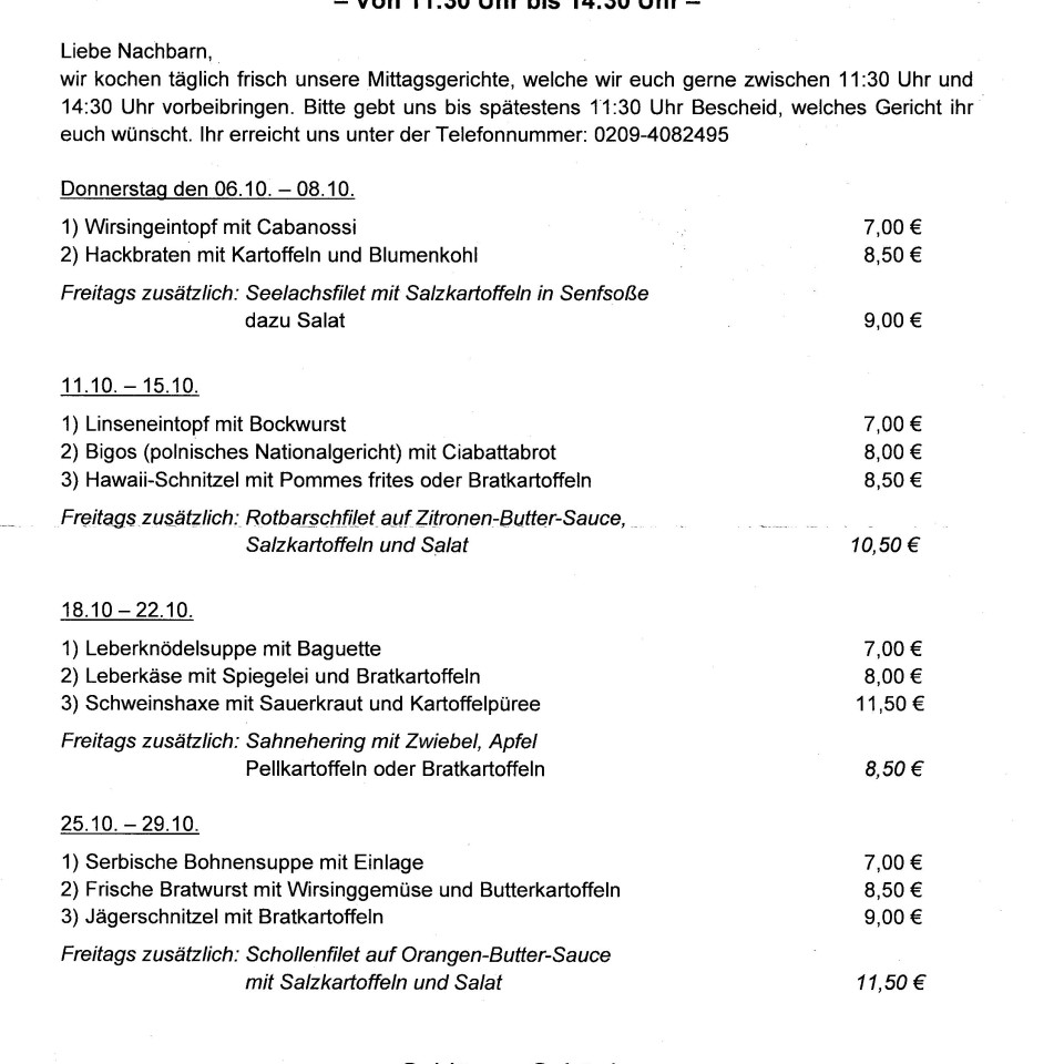 Schlösserschänke Mittagstisch mit Lieferservice 1022