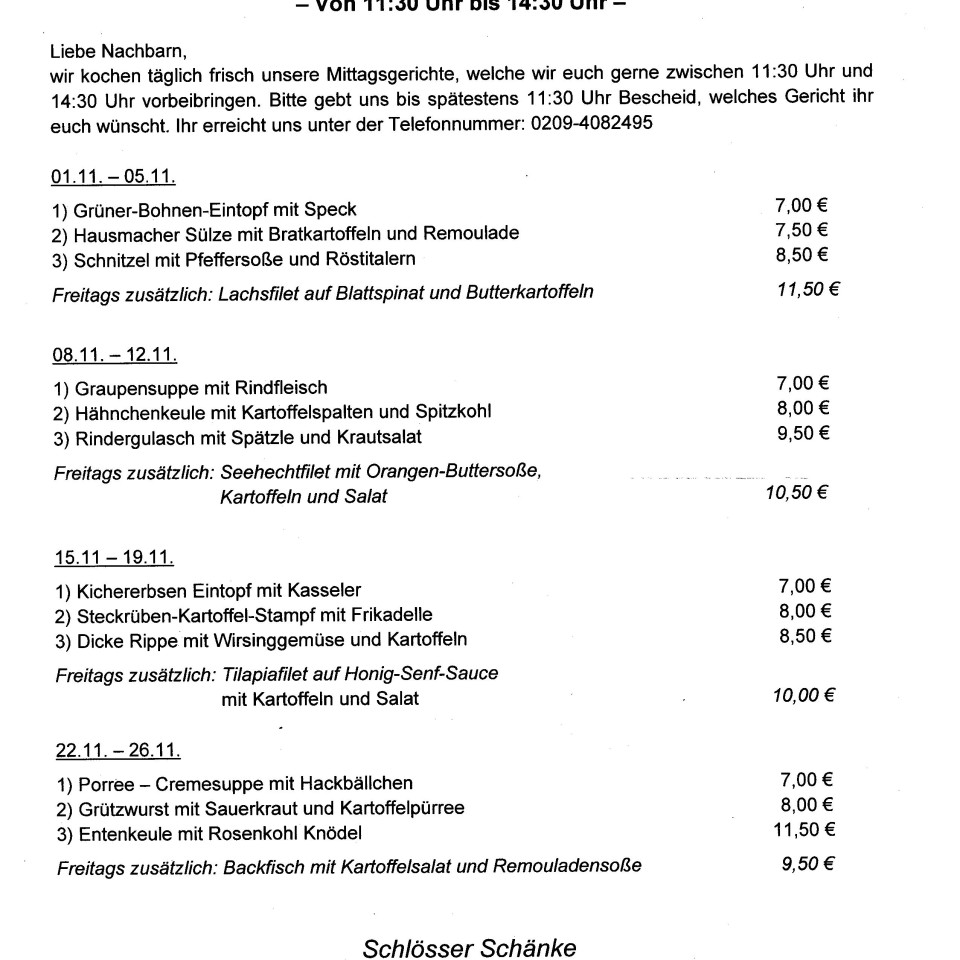 Schlösserschänke Mittagstisch mit Lieferservice 1122