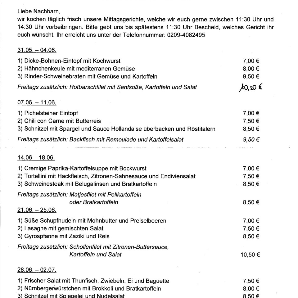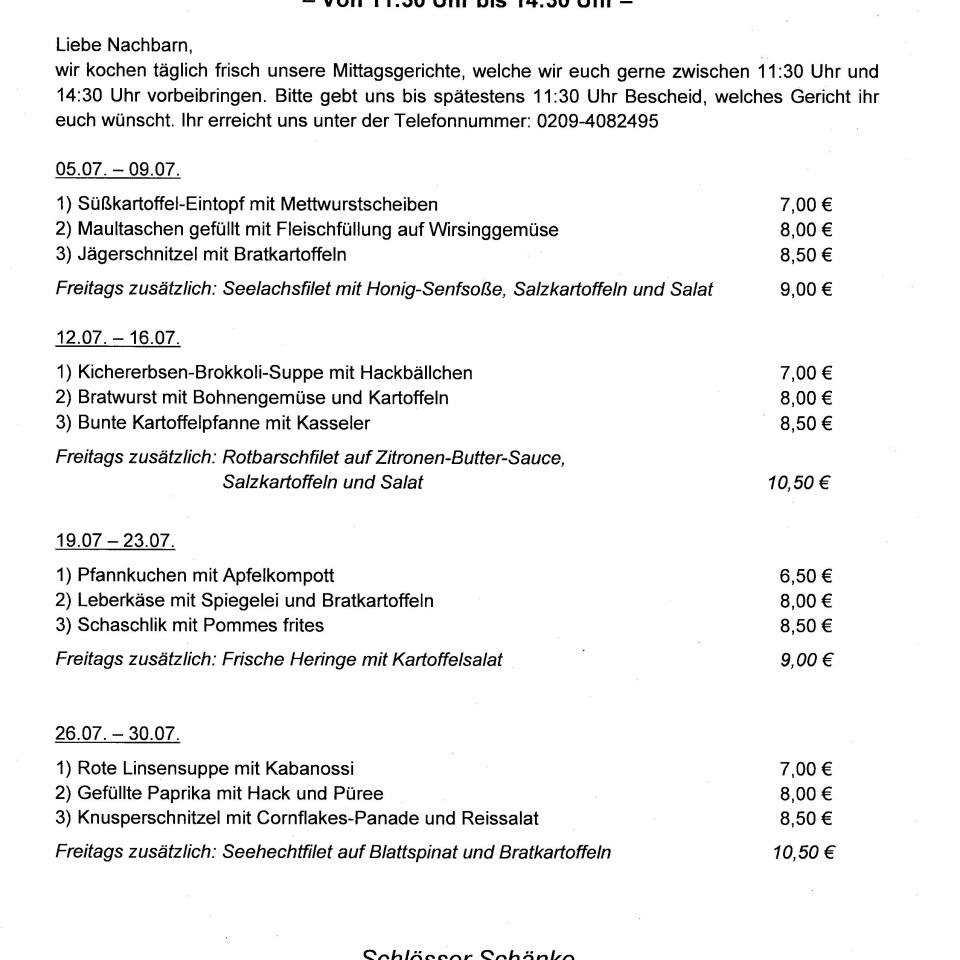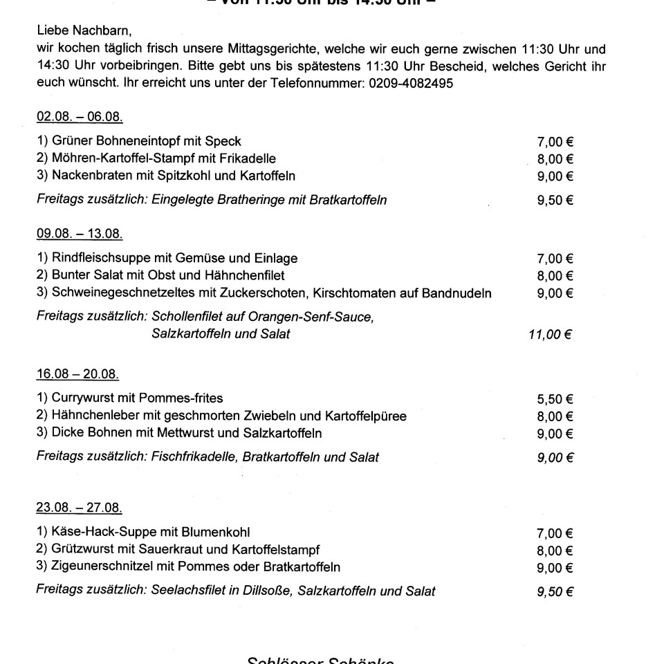 Schlösserschänke Mittagstisch mit Lieferservice 0822