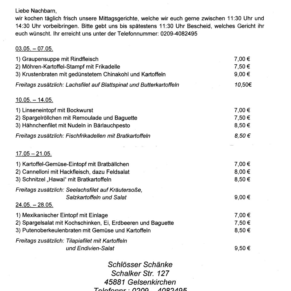 Schlösserschänke Mittagstisch mit Lieferservice 0522