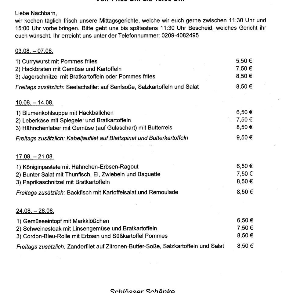 Schlösserschänke Mittagstisch mit Lieferservice 0921