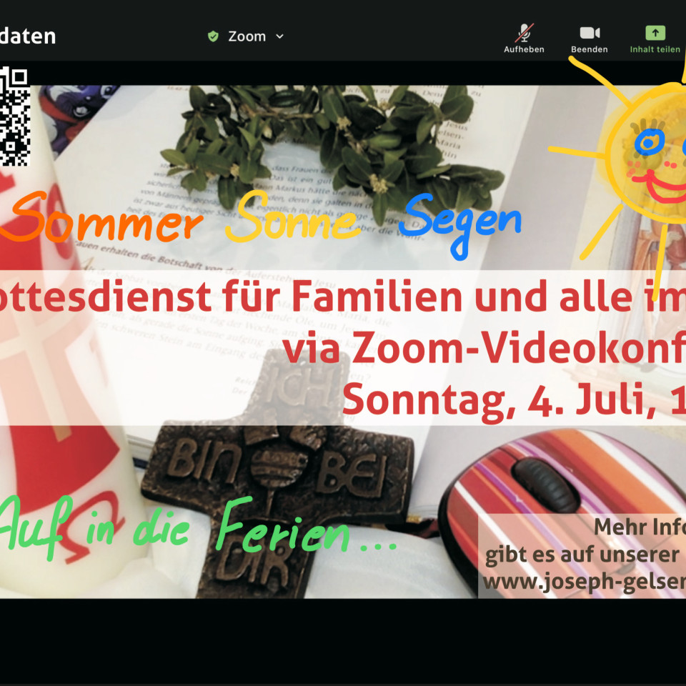 Pünktlich vor den Sommerferien wird am Sonntag, 4. Juli, um 11 Uhr ein weiterer Zoom-Gottesdienst für Familien und alle im Haus gefeiert. Ein Zoom-Gottesdienst lädt dazu ein, gemeinsam mit der Familie und Freunden oder auch alleine im Wohnzimmer und am...→ weiter lesen -