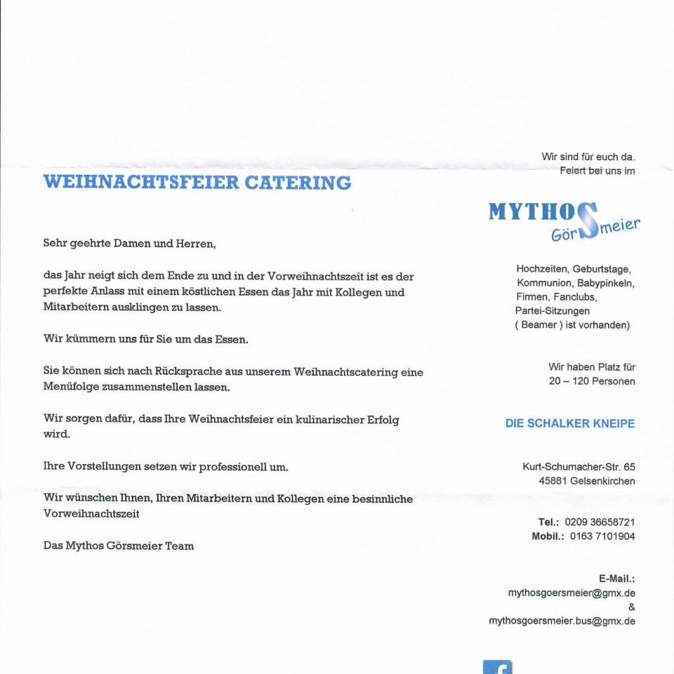 Weihnachtsfeier Catering von MYTHOS Görsmeier
