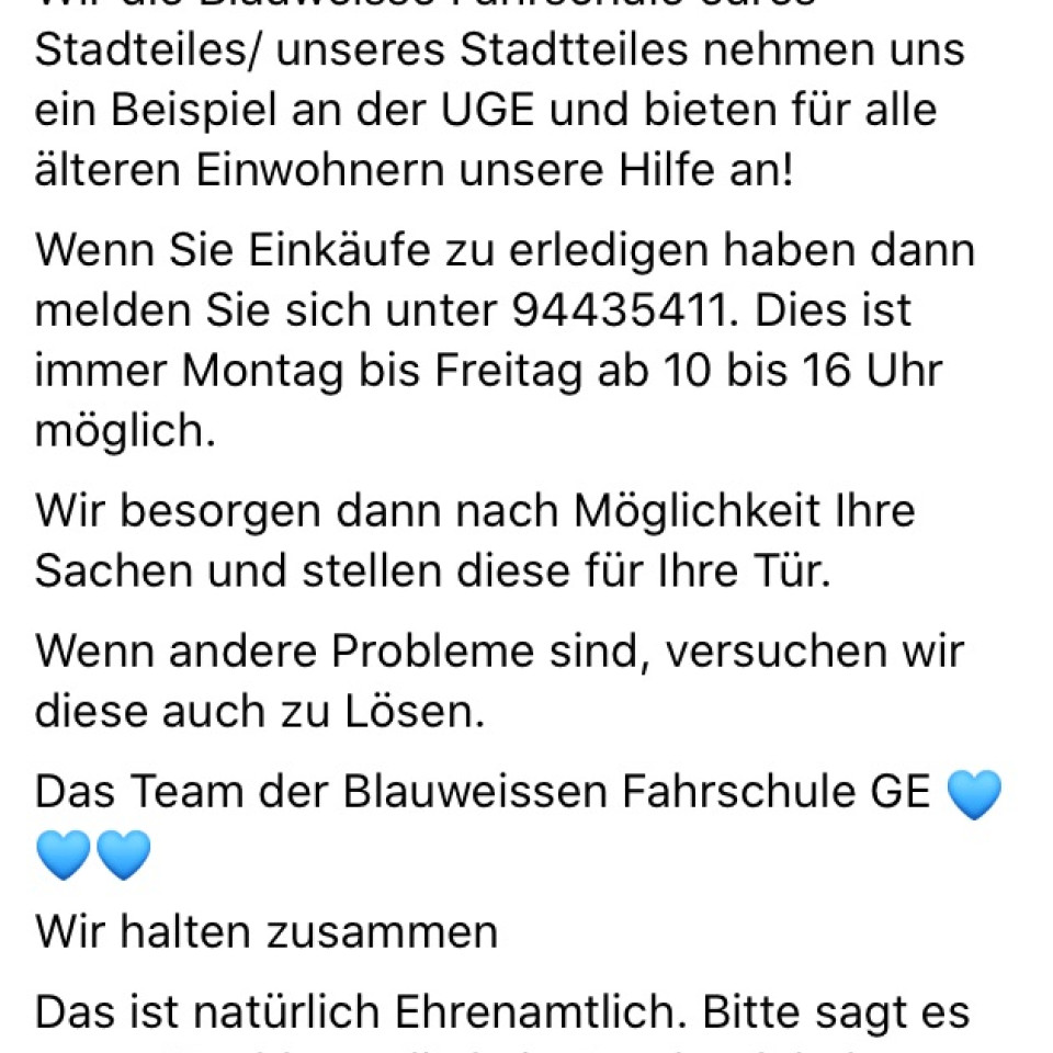 Blauweisse Fahrschule GE macht Einkäufe für Sie