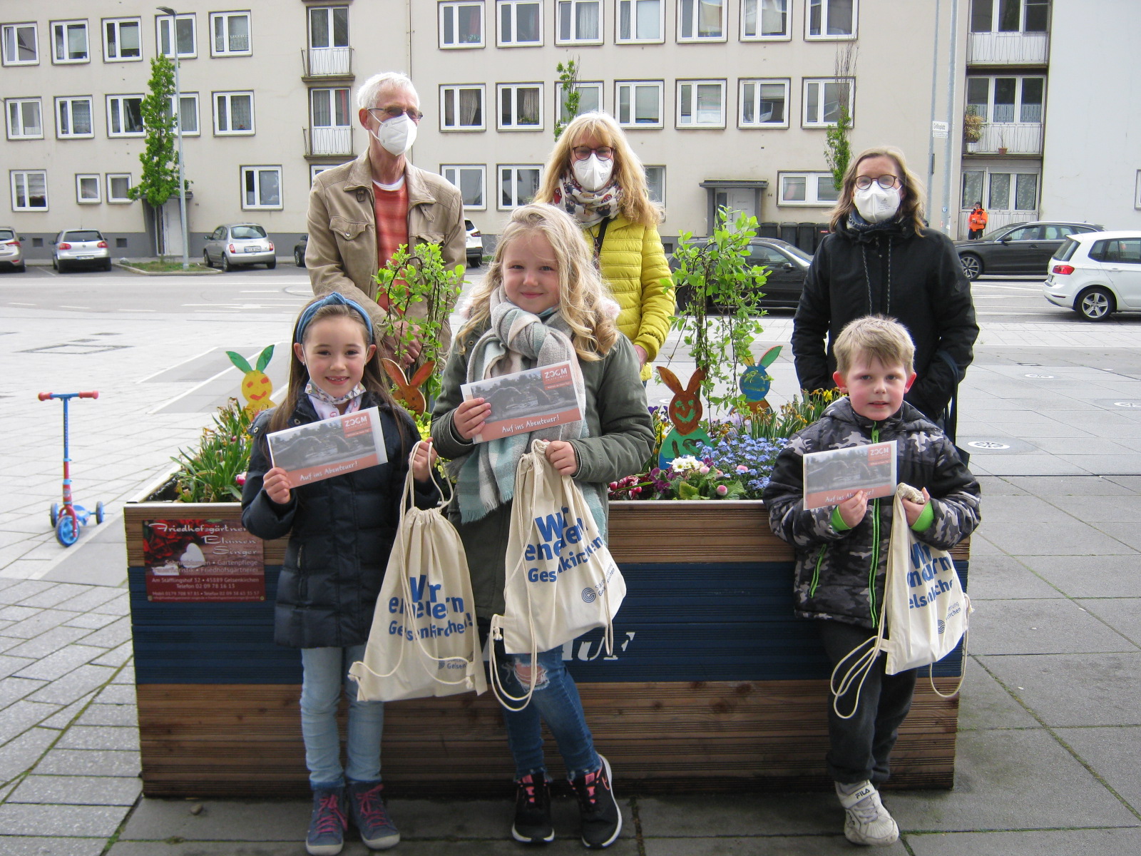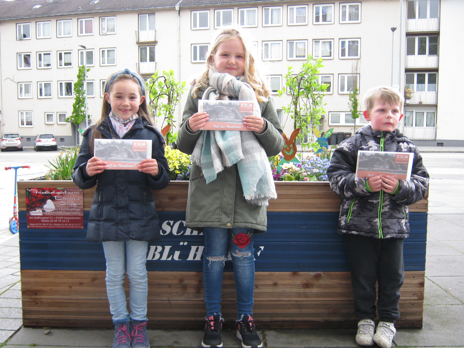 4 Wochen lang hatten die Kinder Zeit sie zu finden. Jetzt wurden aus einer Vielzahl von abgegebenen richtigen Lösungszetteln 3 Kinder als Gewinnerinnen ausgelost. Die Preise, je 1 Gutschein für einen Besuch der Gelsenkirchener Zoom-Erlebniswelt mit der ganzen Familie wurden am Mittwoch, 5. Mai auf dem Grilloplatz von Vertreterinnen des Vereins „Schalke blüht auf“ und des Stadtteilbüro Schalke übergeben.