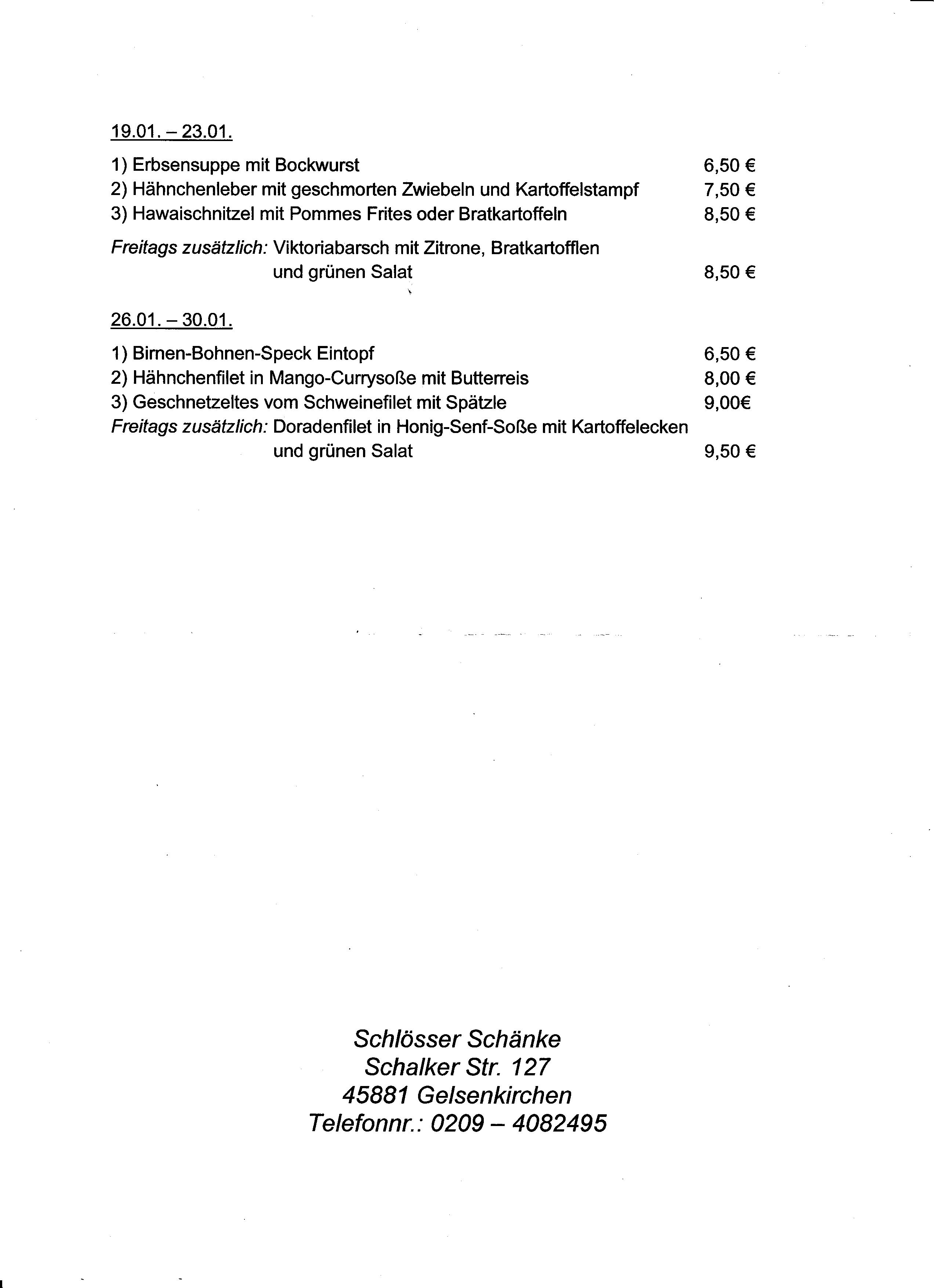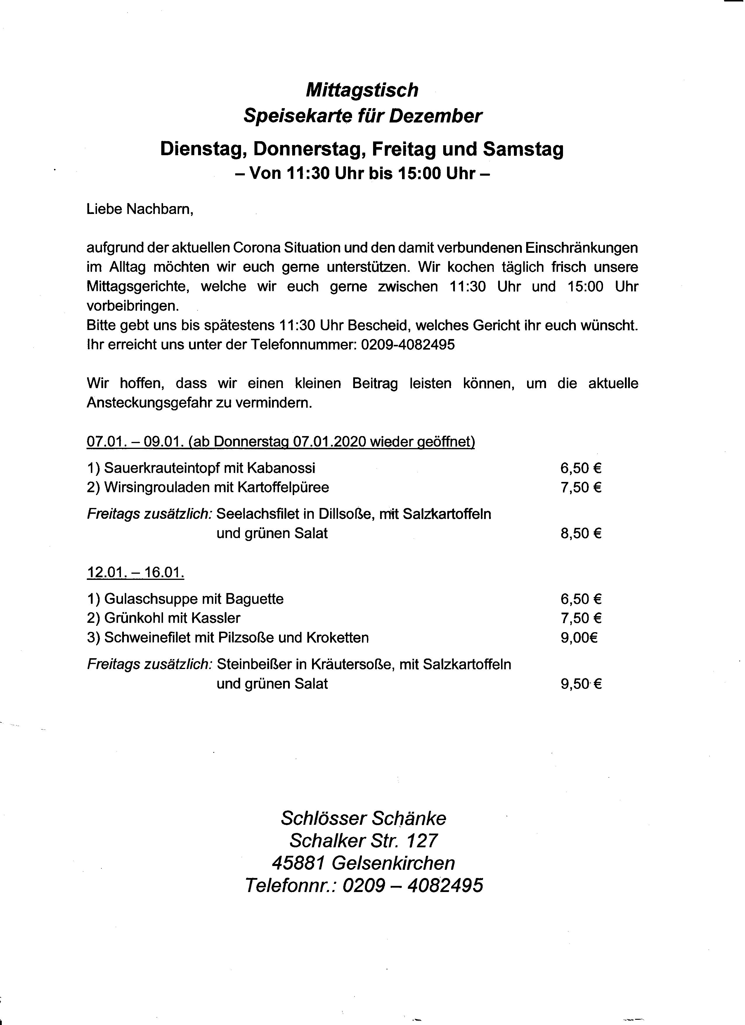 Schlösserschänke Mittagstisch mit Lieferservice 0121
