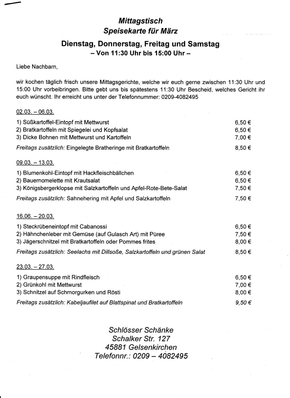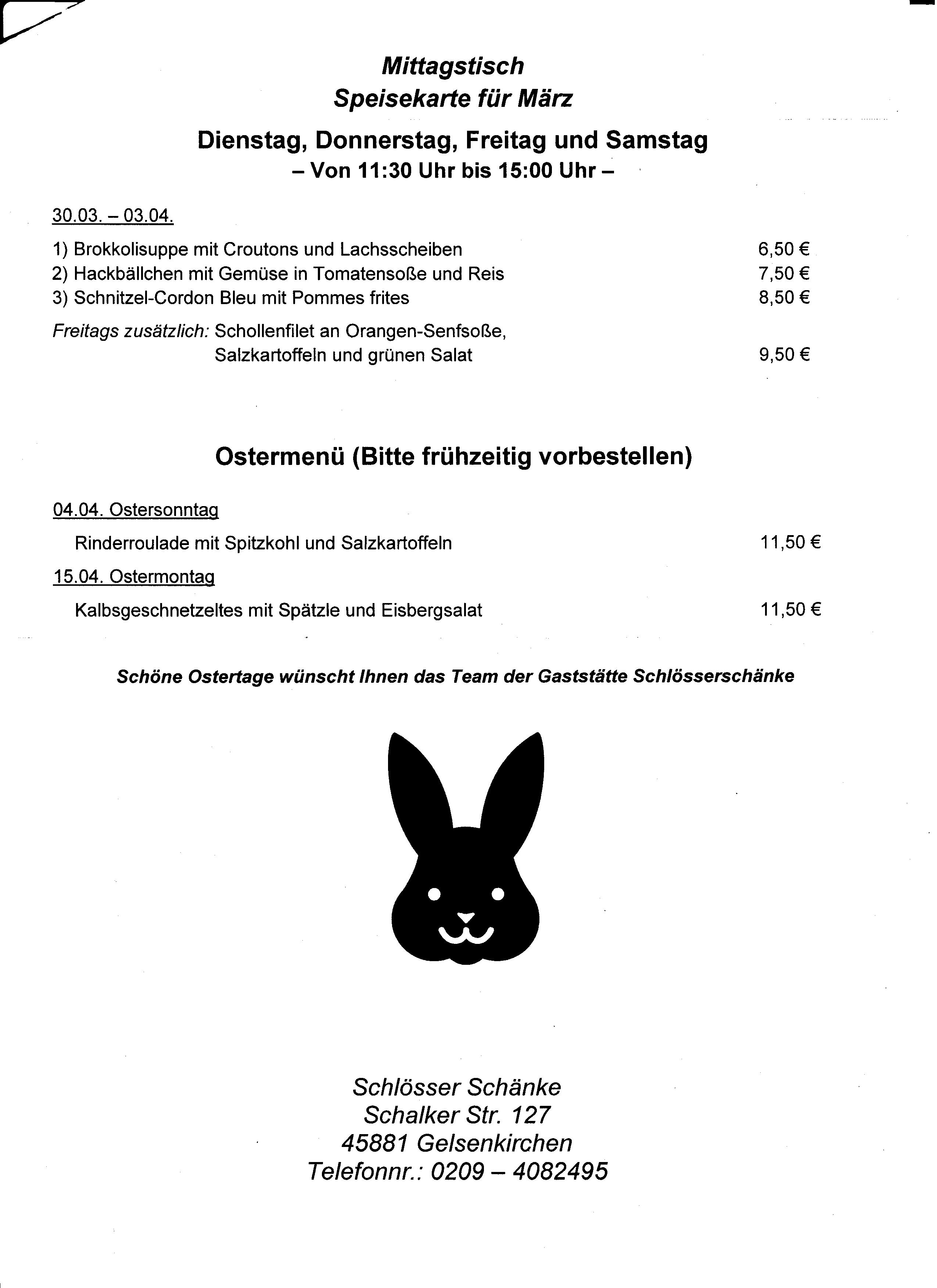 Schlösserschänke Mittagstisch mit Lieferservice 0321