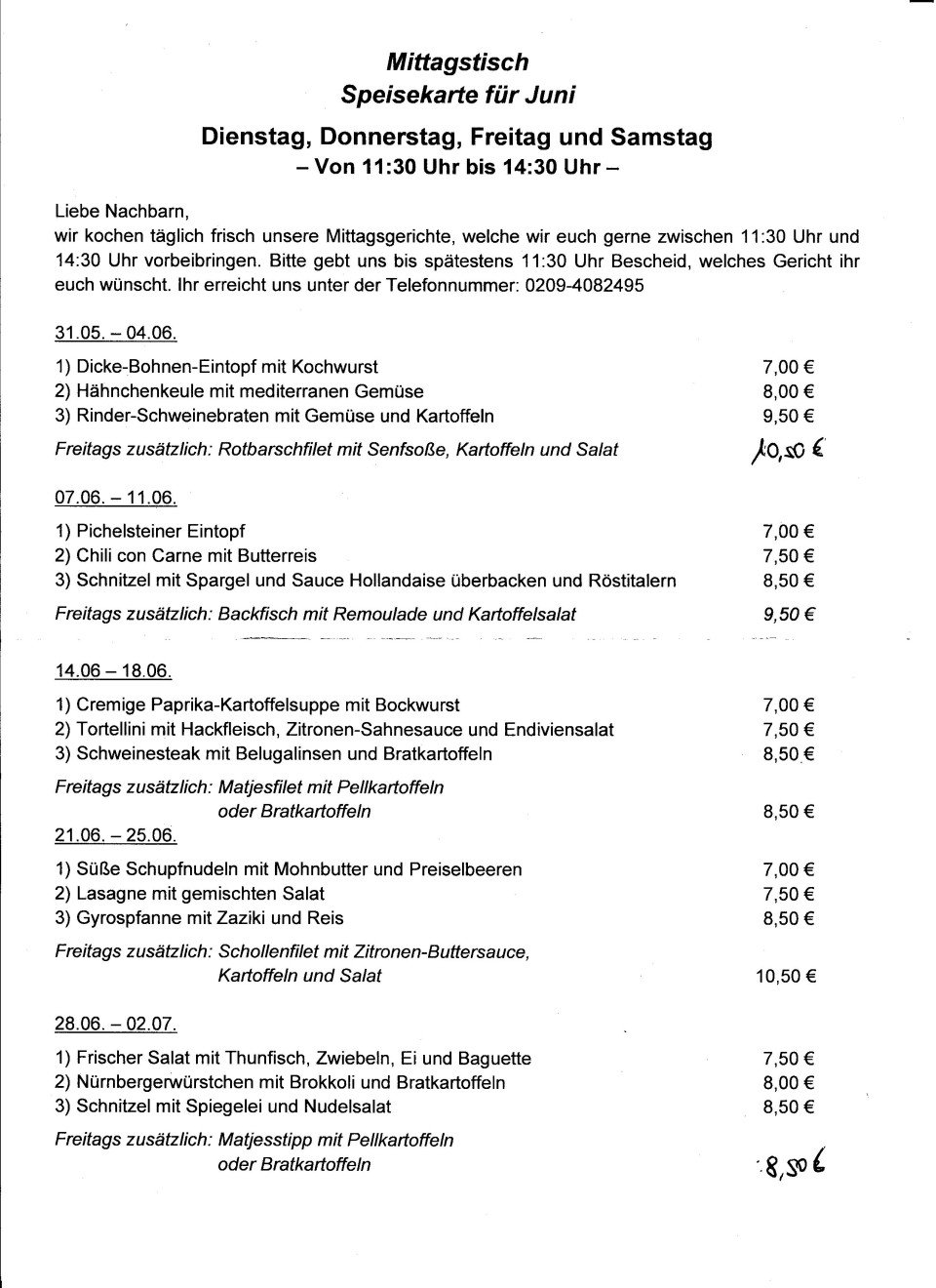 Schlösserschänke Mittagstisch mit Lieferservice 0622