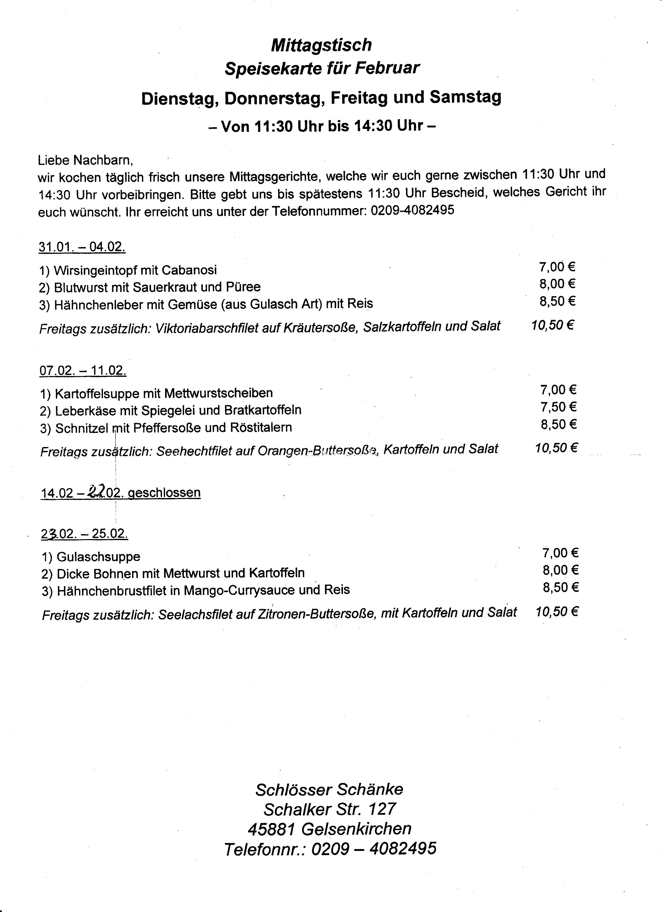 Schlösserschänke Mittagstisch mit Lieferservice 0223