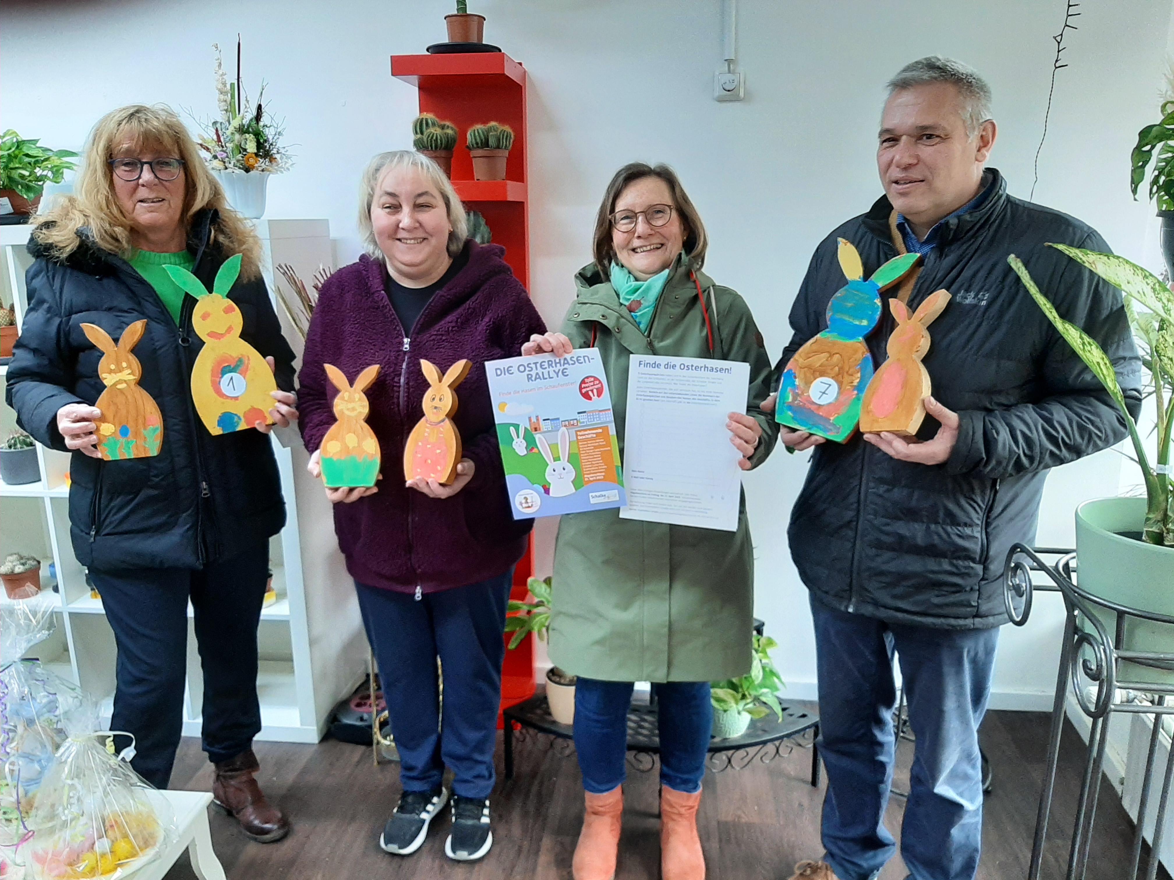 Übergabe des 1. Osterhasenpärchens an Suzys Blumenladen