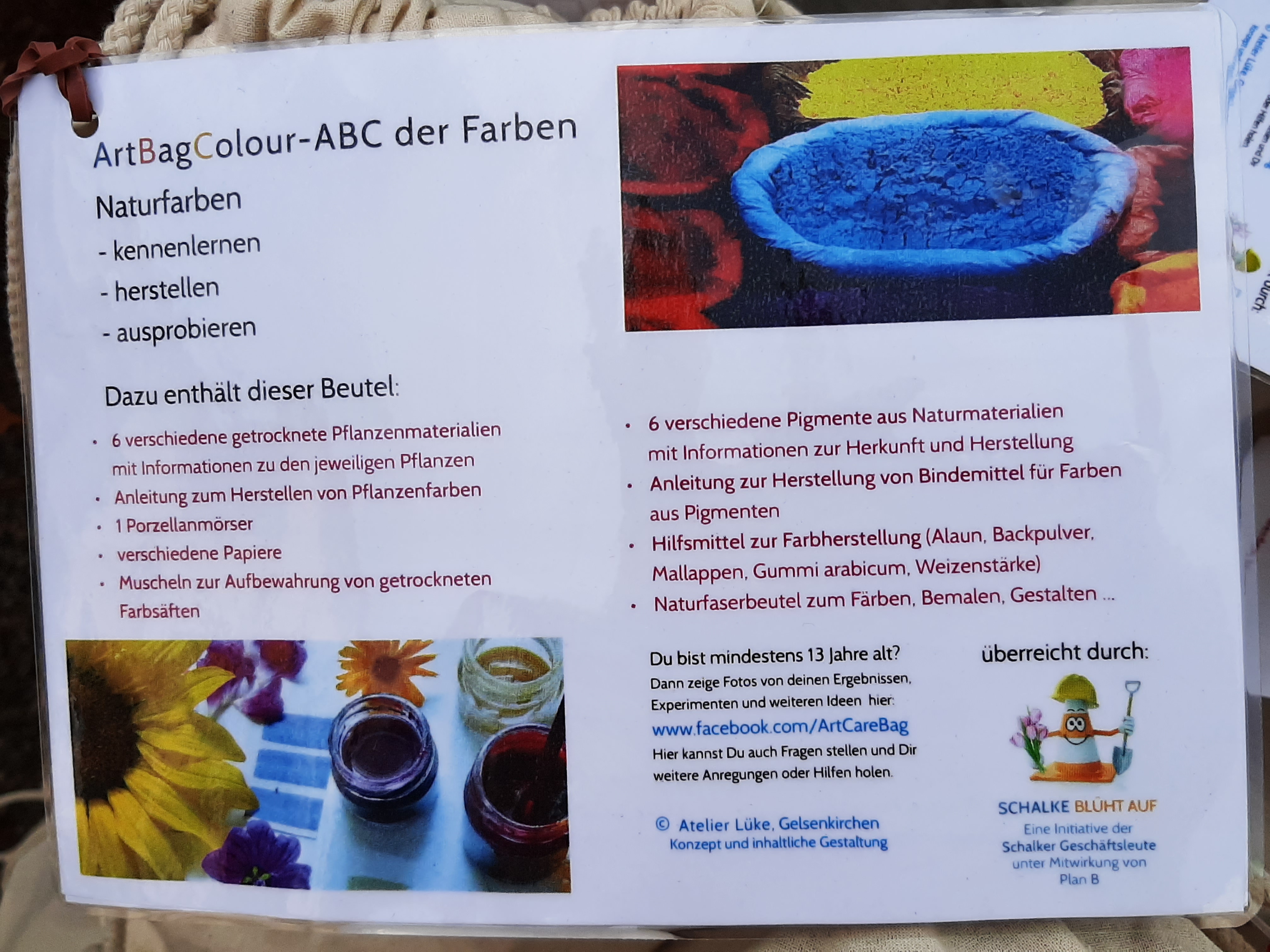 In den von der Künstlerin überreichten Paketen dreht sich alles um das Thema Farbe: Wie kann man selbst Farbe herstellen? Und warum muss man dafür eigentlich