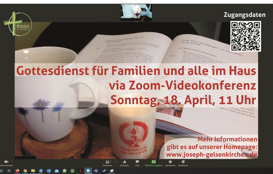 Räumlich getrennt voneinander und doch durch das Videokonferenzformat verbunden wird in Gemeinschaft ein Gottesdienst gefeiert, der von der aktiven Teilnahme aller Mitfeiernden lebt.